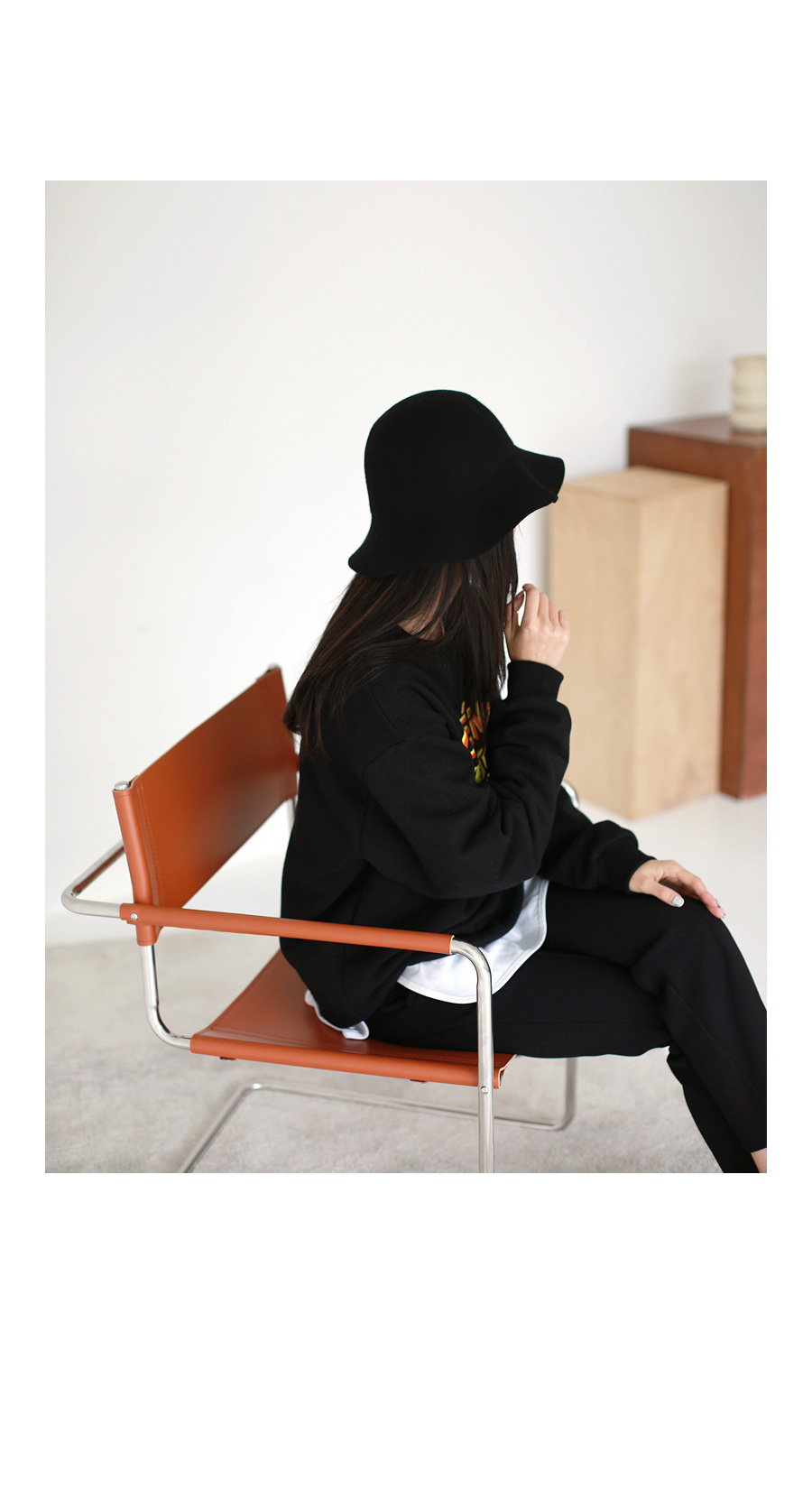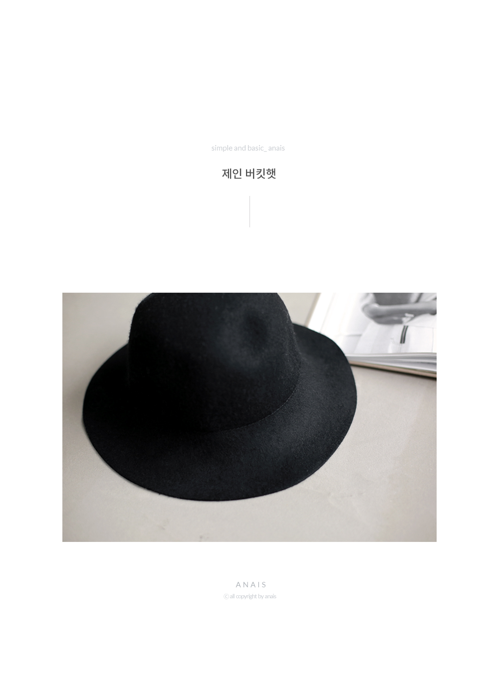 깔끔한 무드의 버킷햇이에요.