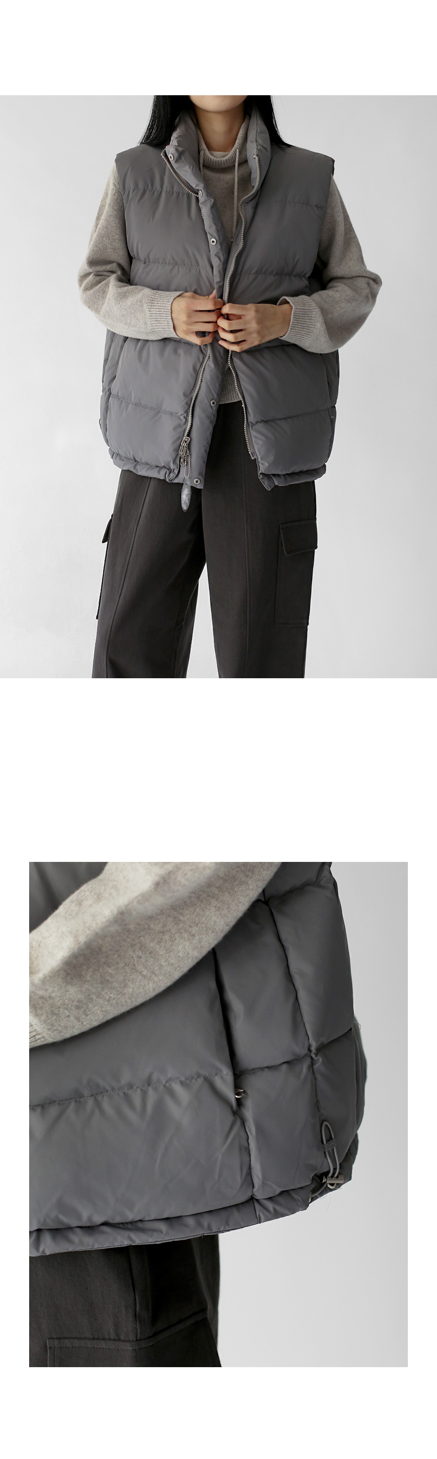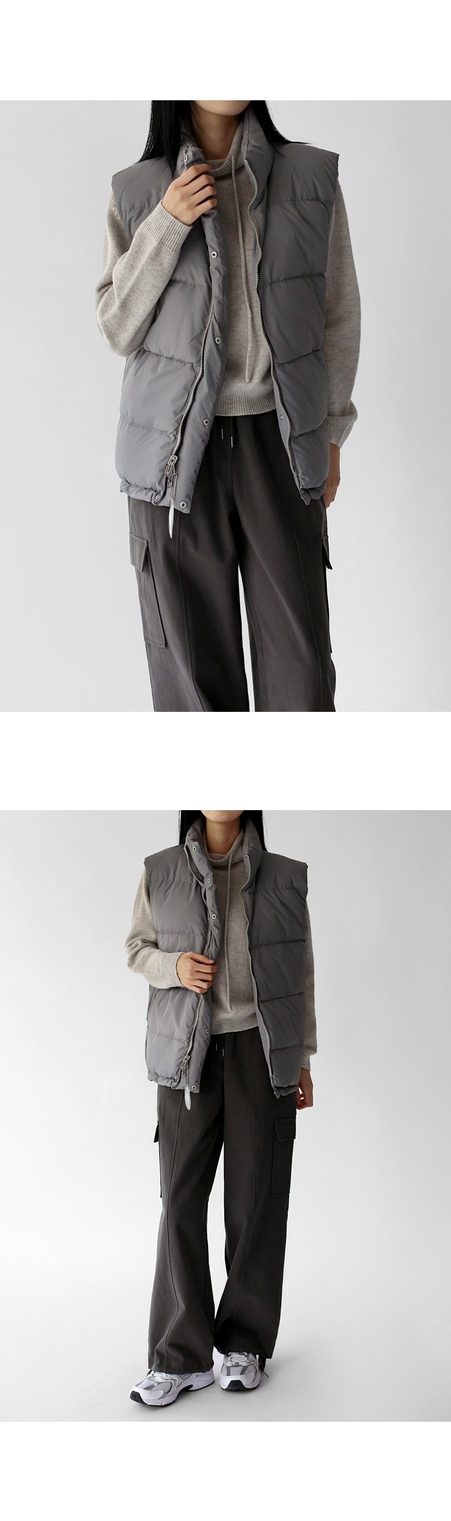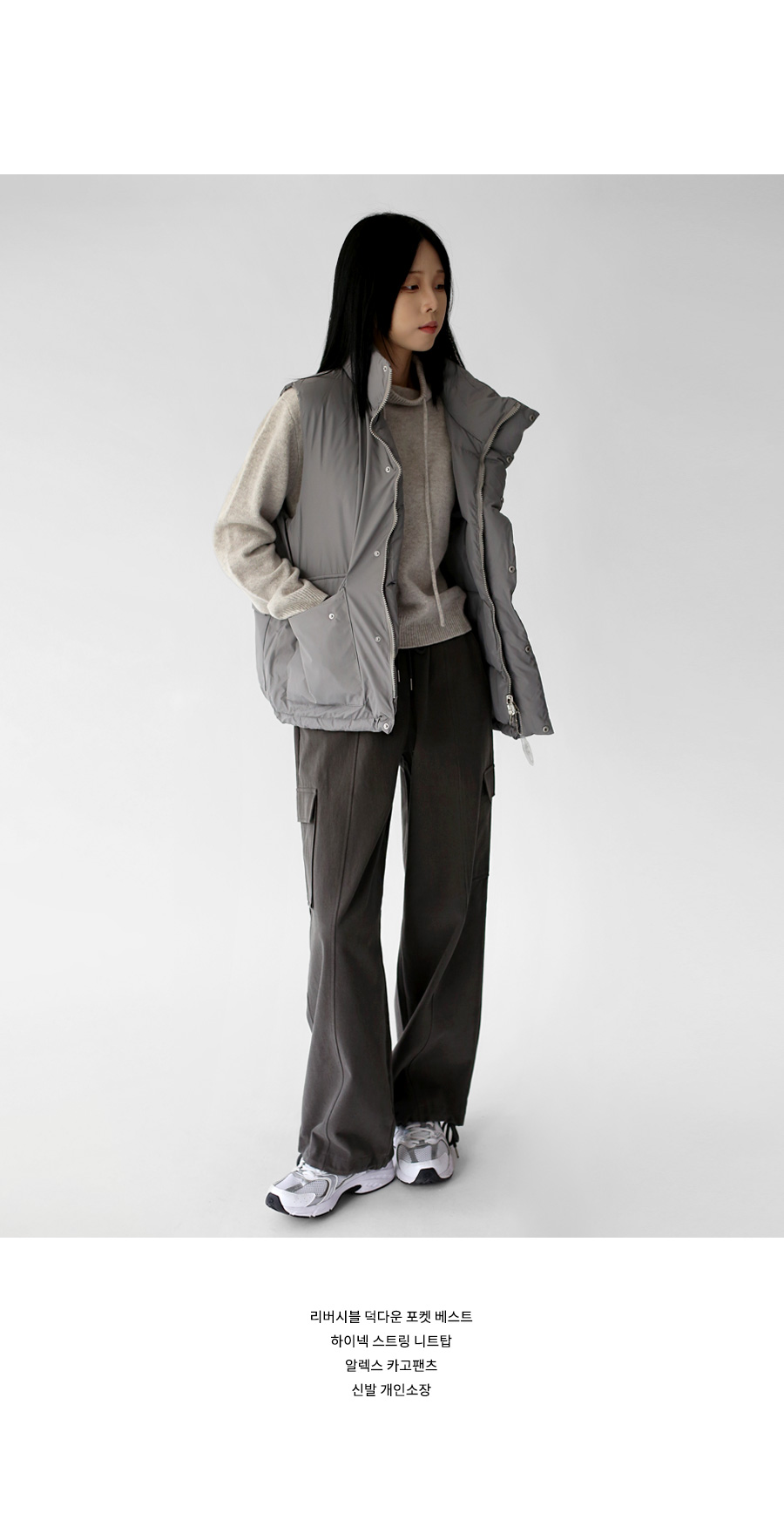 | 모델 착용정보 | J.Y 모델 (키 167cm, 상의 마른 55, 하의 26 inch, 신발 240mm) E.A 모델 (키 168cm, 상의 마른 55, 하의 25 inch, 신발 240mm) : 도브그레이 |