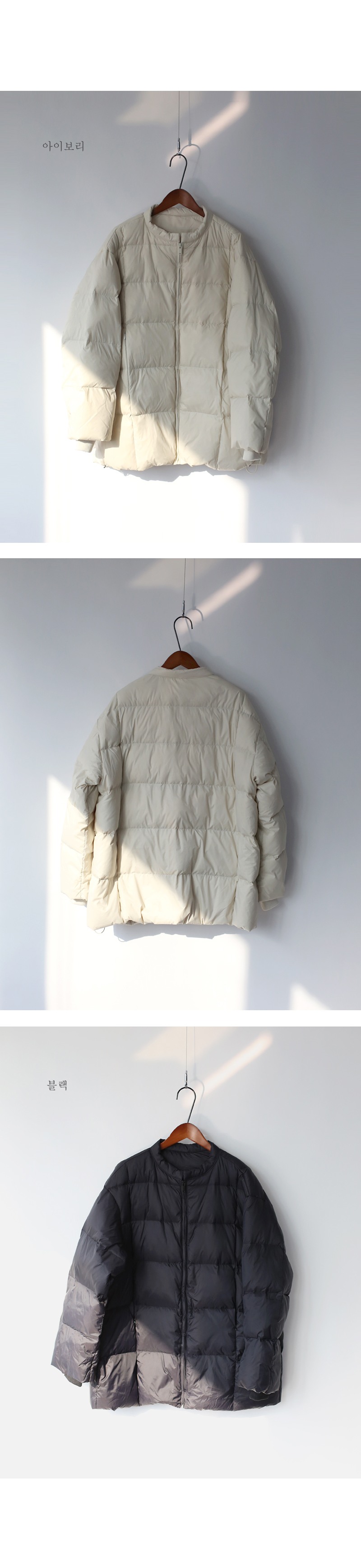 중간 두께감의 오리털 패딩!