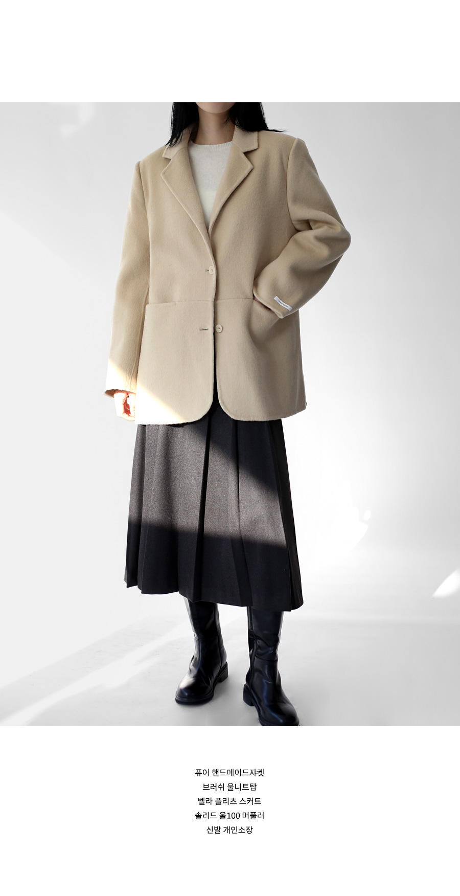 | 소재 | 겉감 ; 폴리에스테르 70%, 레이온 25%, 스판 5% / 안감 ; 폴리에스테르 100% (Outer : Polyester 70%, Rayon 25%, Spandex 5% / Lining : Polyester 100%) |