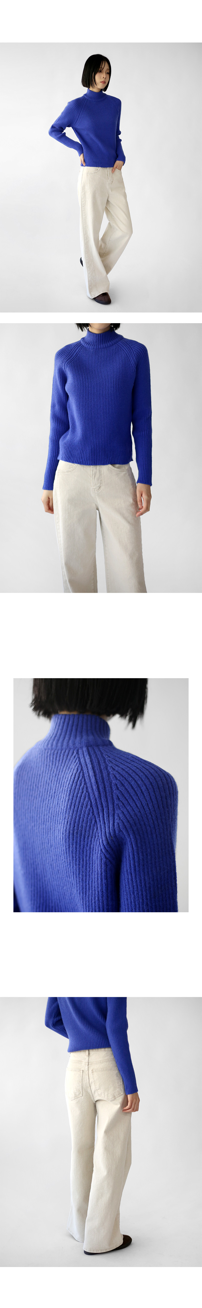 골지 짜임의 니트탑.