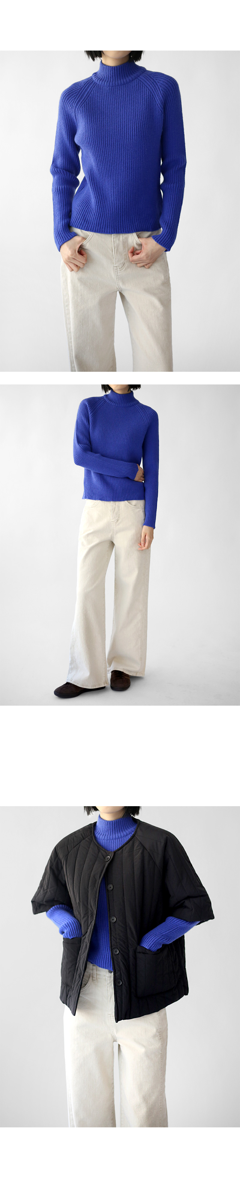 도톰하고 부드러운 질감의 니트 소재.