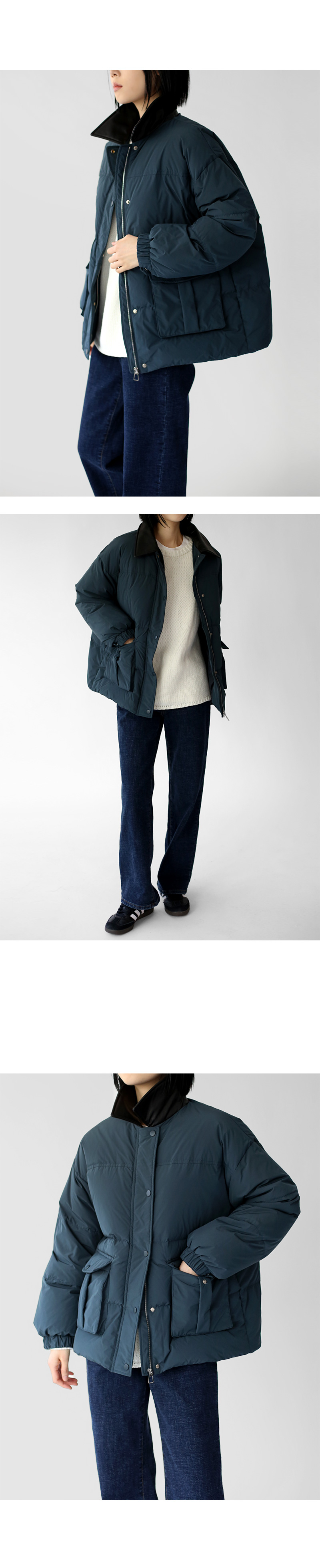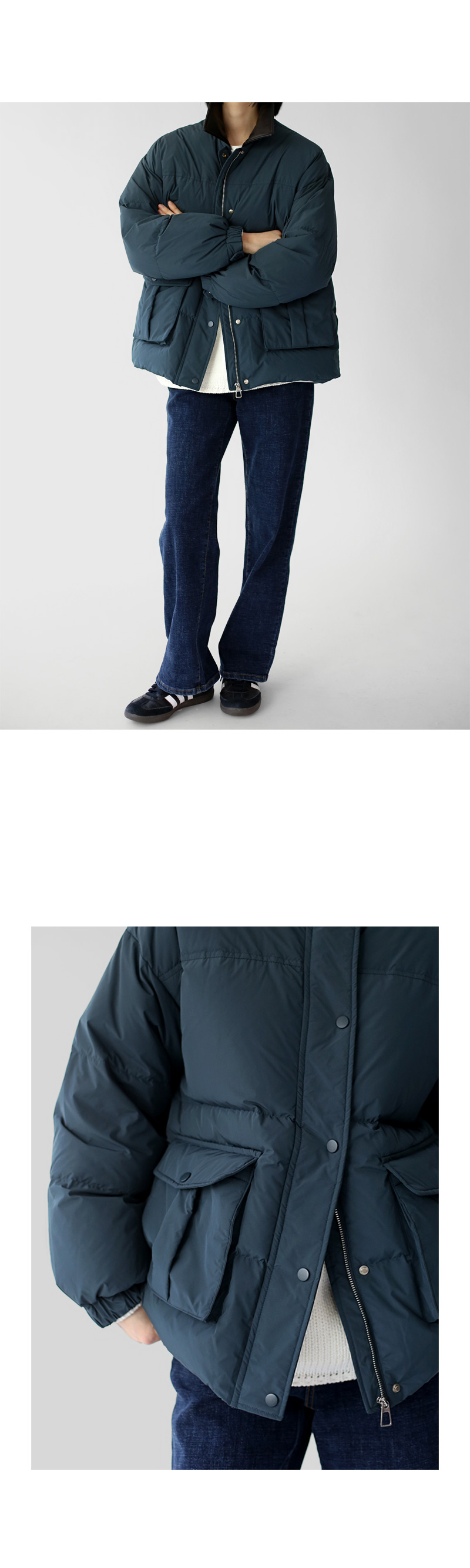 | 모델 착용정보 | J.Y 모델 (키 167cm, 상의 마른 55, 하의 26 inch, 신발 240mm) E.A 모델 (키 168cm, 상의 마른 55, 하의 25 inch, 신발 240mm) : 블루그린 |