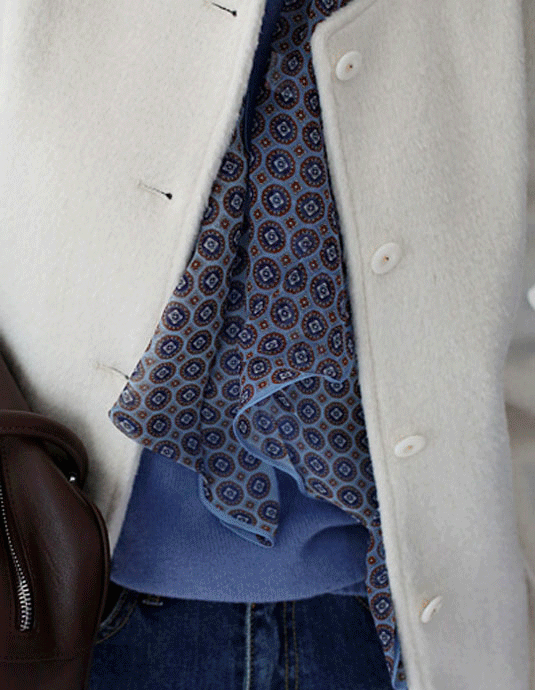 두툼하고 보온성 좋은 울 혼방 소재.