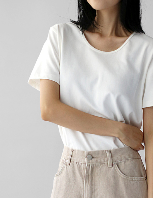 U-neck thick half-sleeved tee