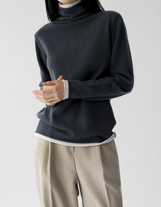 Color block turtleneck knit top